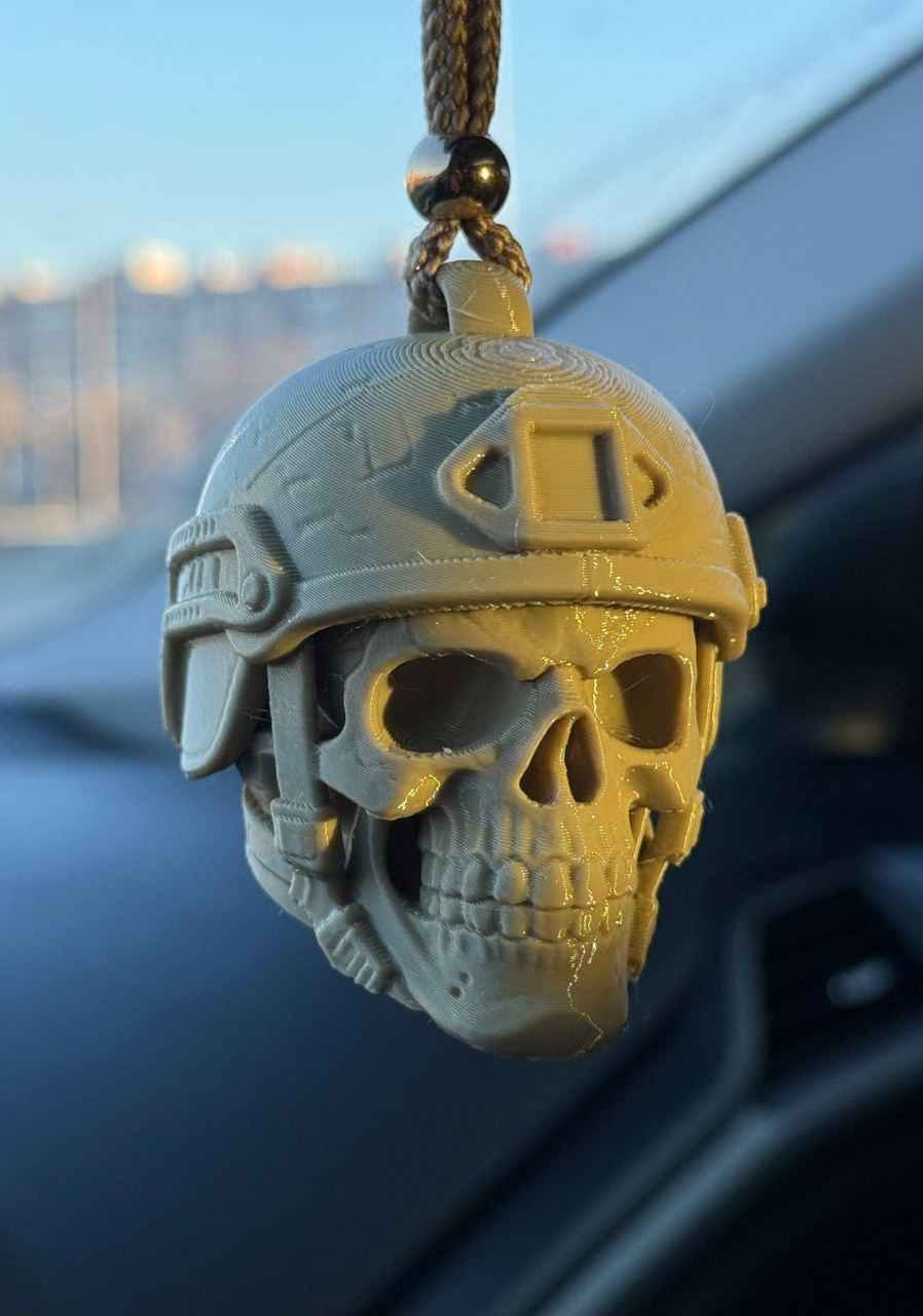 • Фігурна пластикова підвіска у вигляді голови, виготовлена методом 3D-друку.